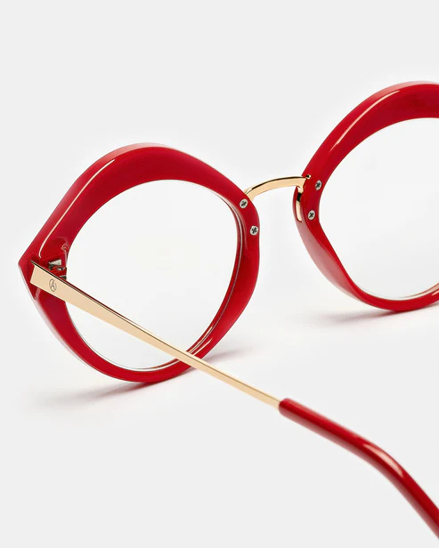 Os óculos de leitura Lips Scarlet combinam uma silhueta oval refinada com um acabamento em vermelho vibrante. Desenhado exclusivamente para mulheres, este modelo mescla linhas delicadas com cores expressivas, criando óculos de leitura que incorporam sensualidade e força.